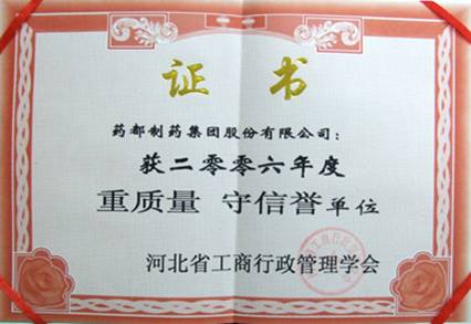 2006年2月,被河北工商行政管理協會授予“重質量 守信譽”單位。